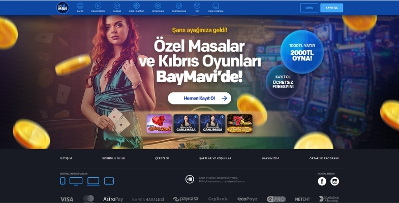 Baymavi ilk yatırımınıza özel 1000 TL’ye kadar sunmuş olduğu %100 Hoşgeldin bonusu ve Yatırımsız bedava olarak verdiği 50 Freespin kampanyası ile yeni başlayan bahis severlerin en çok tercih ettiği online bahis sitesi haline gelmiştir. Ayrıca yapmış olduğu bir çok güncel kampanya ile eski kullanıcılarının da her yatırımında bonuslardan yararlanmasını sağlamaktadır. Her yatırım seçeneğinde kullanılabilecek %25’e varan yatırım bonusları ile daha fazla kazanma şansını anında ulaşacaksınız. Lisanslı ve Güvenilir bahis siteleri arasında yer alan Baymavi’ye hemen üye olabilir ve yatırım esnasında bonuslarınızı seçerek bahislerinizi almaya başlayabilirsiniz.